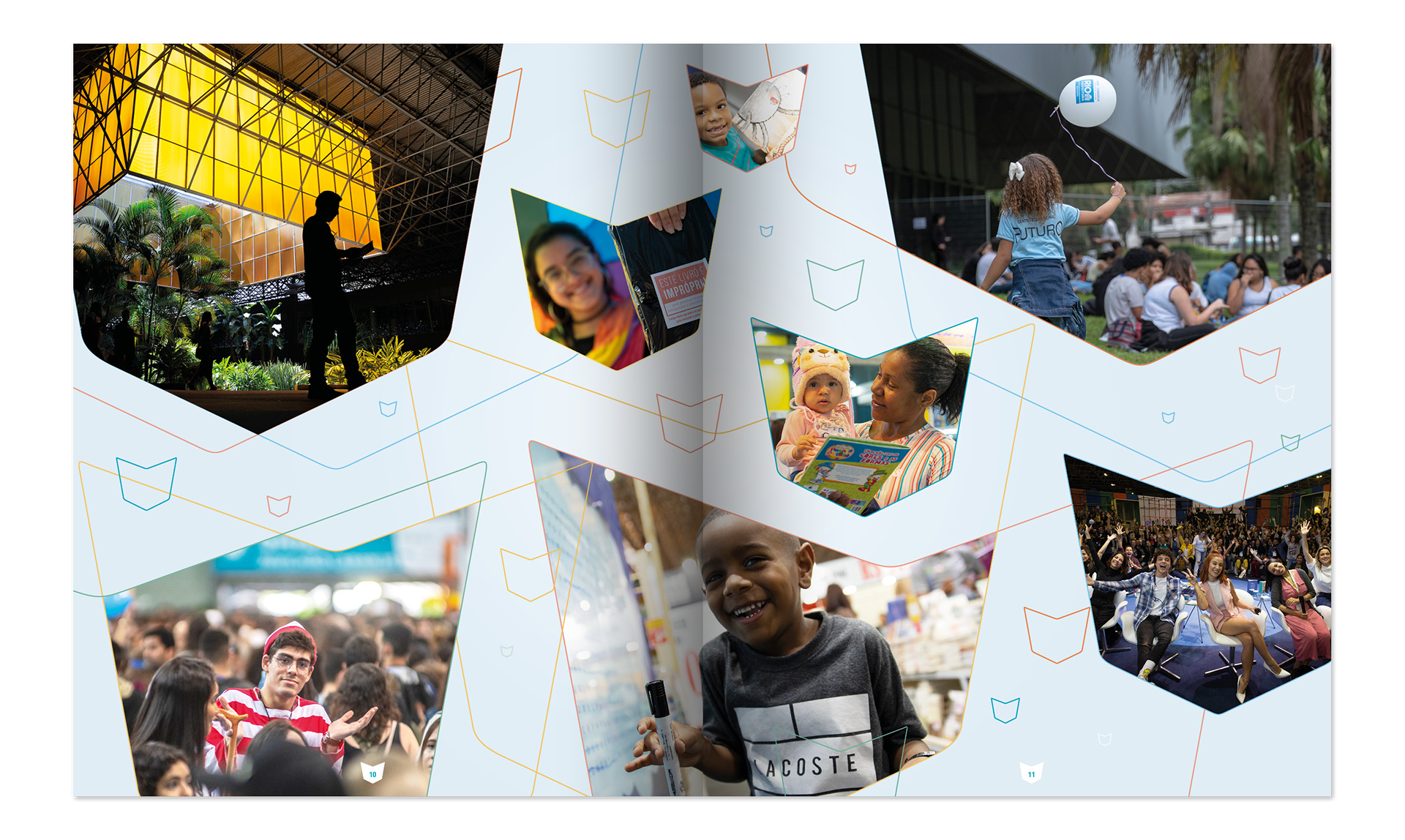 Além disso, o miolo contou com uma grande diversidade de fotos do evento, tanto ocupando páginas duplas ou dentro dos formatos de pipa, de maneira a tornar o material visualmente bastante atraente.