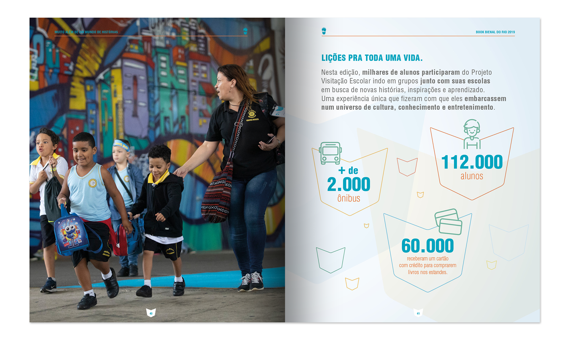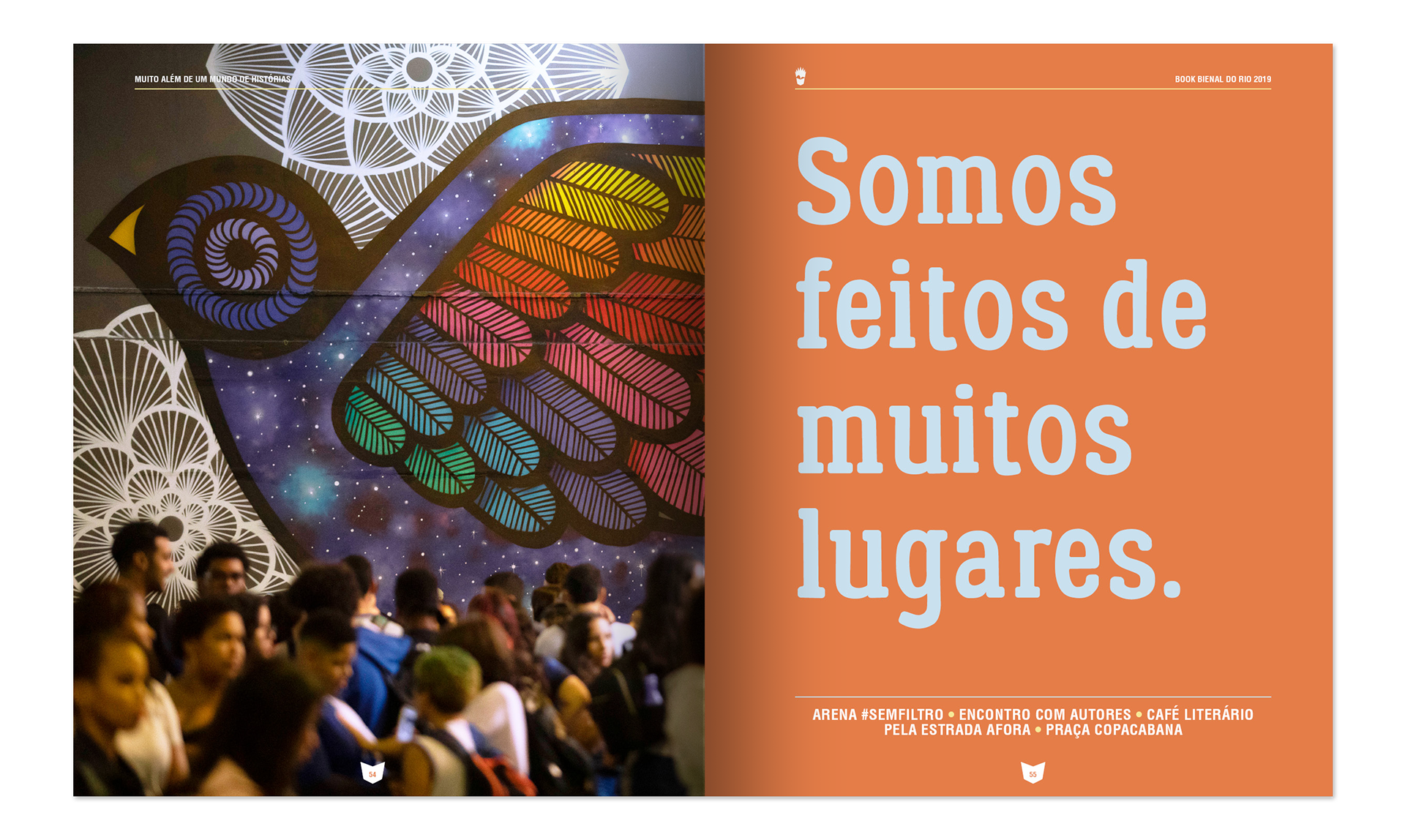 Este projeto consistiu no desdobramentos da identidade visual da Bienal do Livro 2019 em diversos materiais impressos.