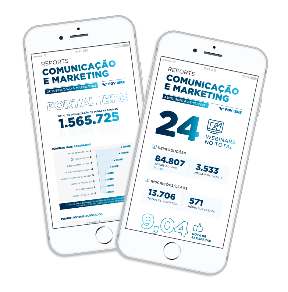 O projeto gráfico utiliza da paleta de cores institucional da FGV para passar a seriedade que o documento precisa, mas para trazer um visual um pouco diferenciado foi escolhido um filtro de cor invertido na abertura dos capítulos para dar esse visual moderno à identidade clássica.